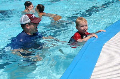 We went to the pool today and got Austin a life jacket. He's been getting braver and braver everytime we go swimming (lake or pool) and today has just been the biggest accomplishment he has done so far! We are just so proud of him for trying it and so glad he's loving it!